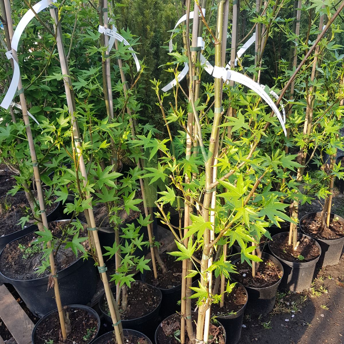 Zdjęcia przedstawiają egzemplarze Liquidambar styraciflua `Worplesdon` w wybranych rozmiarach.