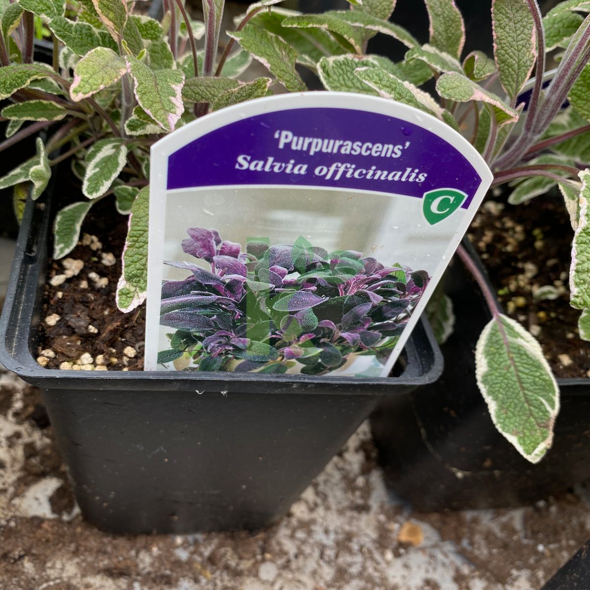 Zdjęcia przedstawiają egzemplarze Salvia officinalis `Purpurascens` w wybranych rozmiarach.