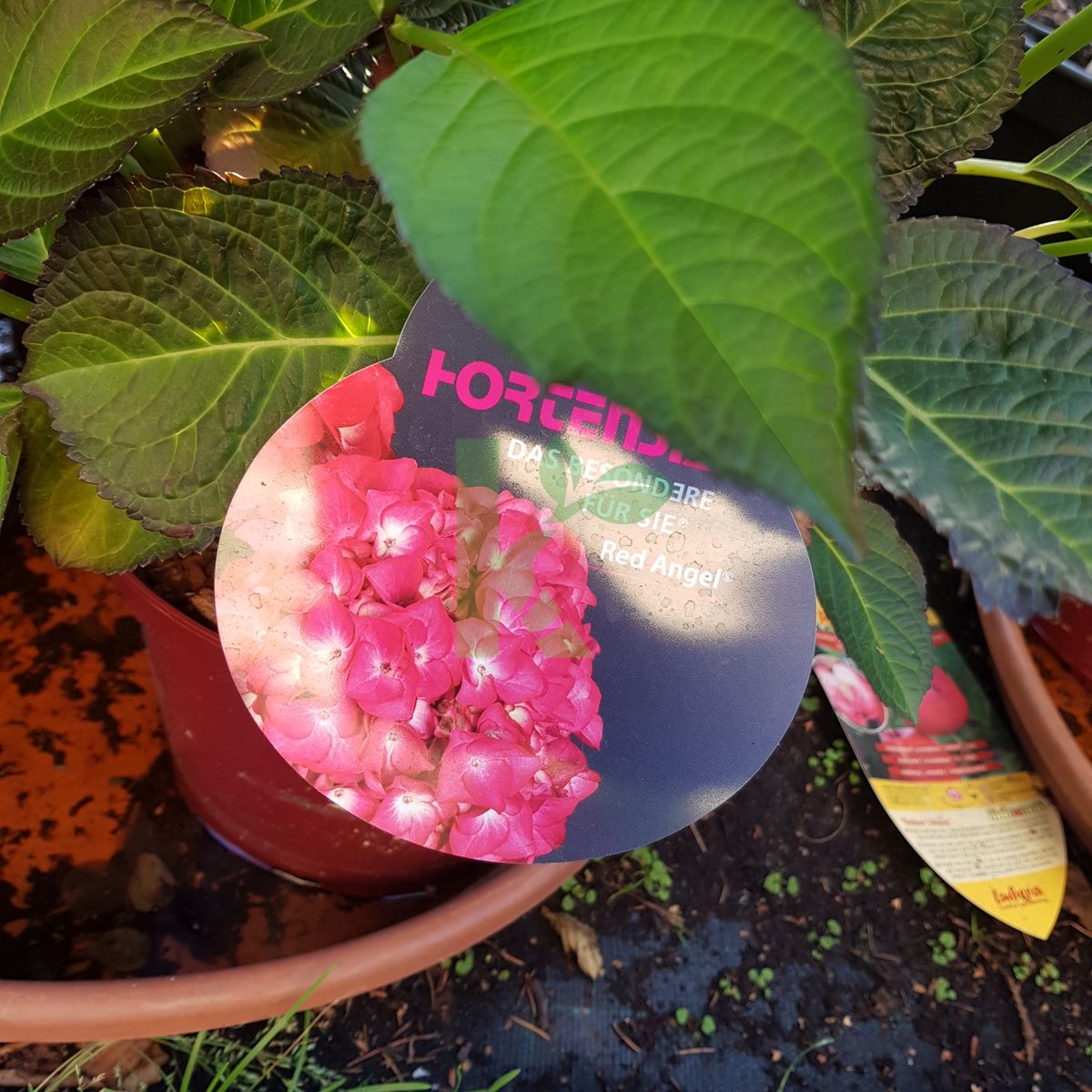 Zdjęcia przedstawiają egzemplarze Hydrangea macrophylla `Red Angel` w wybranych rozmiarach.