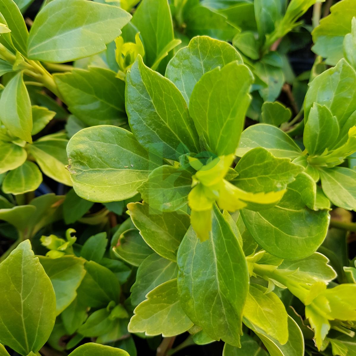Zdjęcia przedstawiają egzemplarze Pachysandra terminalis w wybranych rozmiarach.