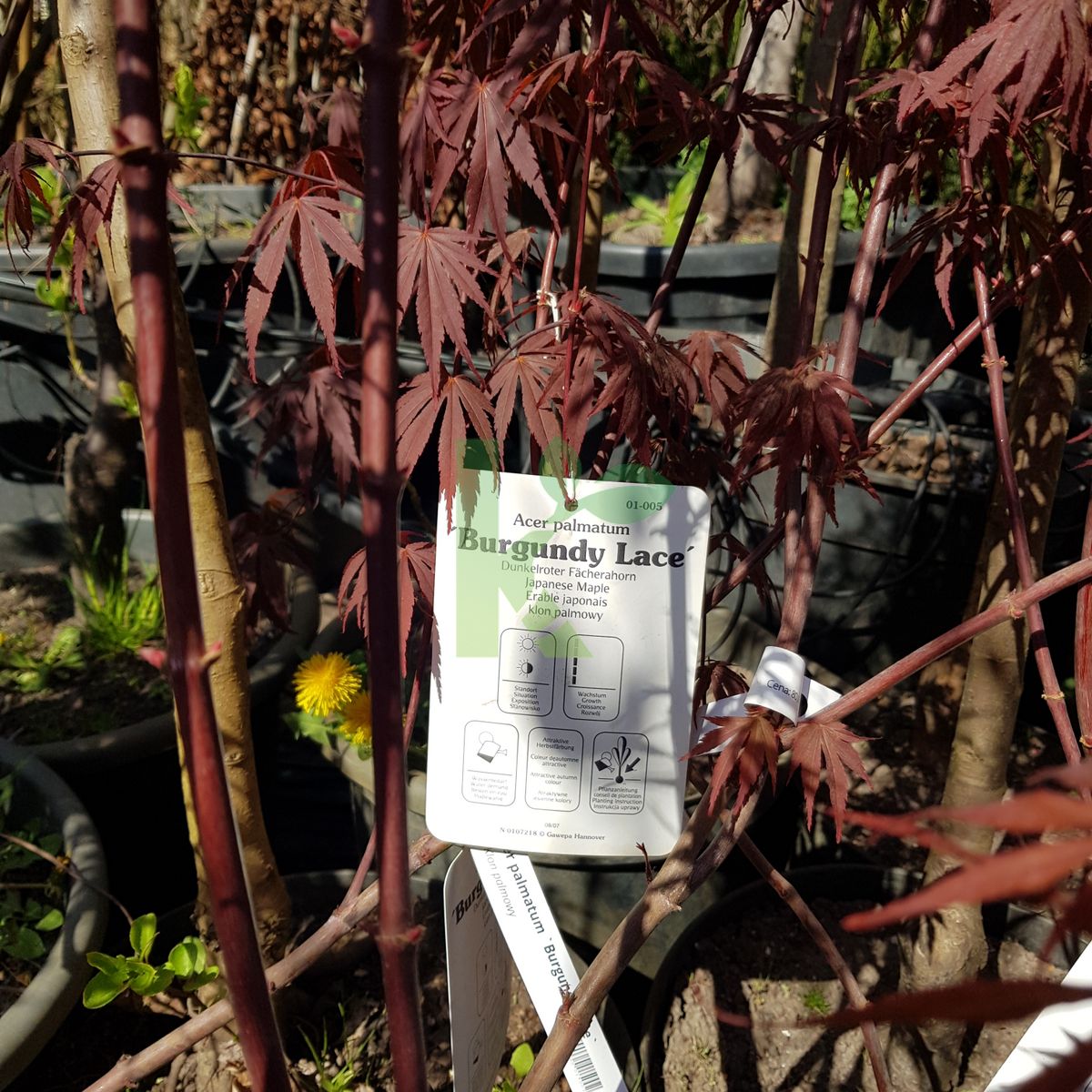 Zdjęcia przedstawiają egzemplarze Acer palmatum `Burgundy Lace` w wybranych rozmiarach.