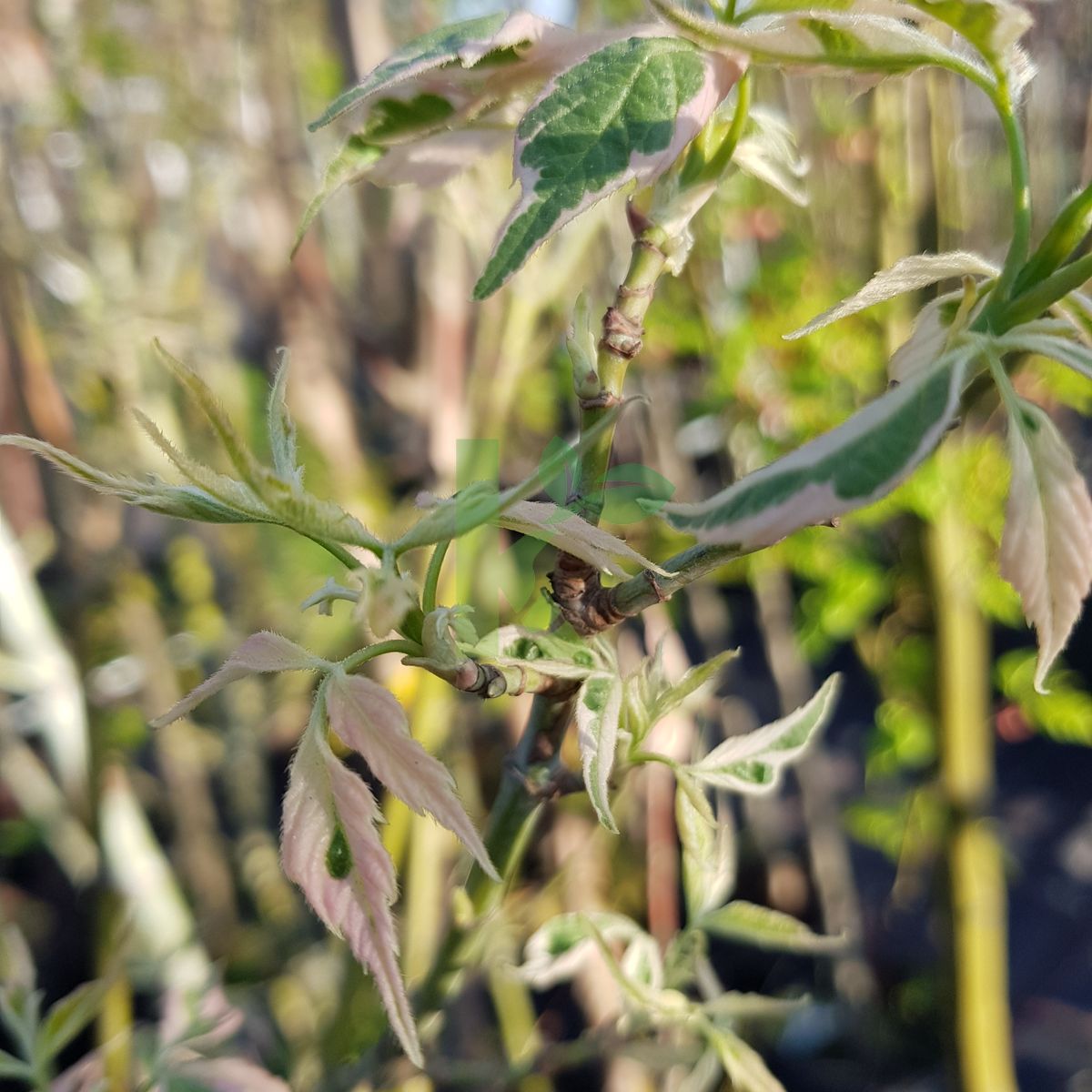 Zdjęcia przedstawiają egzemplarze Acer negundo `Flamingo` w wybranych rozmiarach.