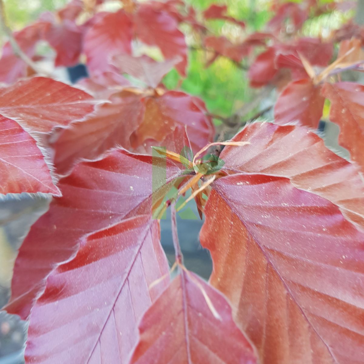 Zdjęcia przedstawiają egzemplarze Fagus sylvatica `Dawyck Purple` w wybranych rozmiarach.