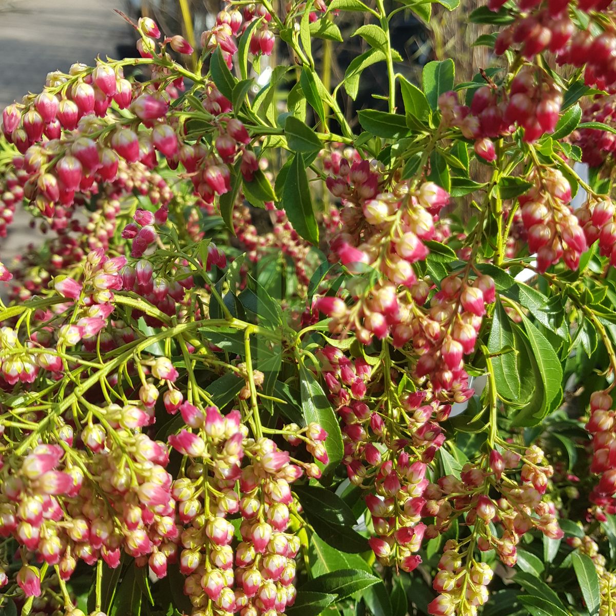 Zdjęcia przedstawiają egzemplarze Pieris japonica `Passion` w wybranych rozmiarach.