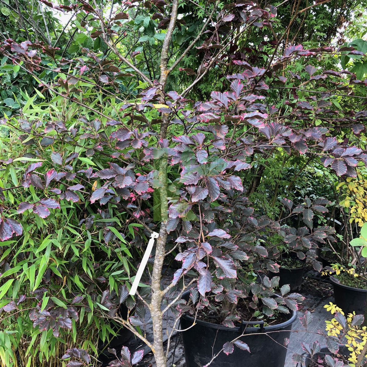 Zdjęcia przedstawiają egzemplarze Fagus sylvatica `Tricolor` w wybranych rozmiarach.