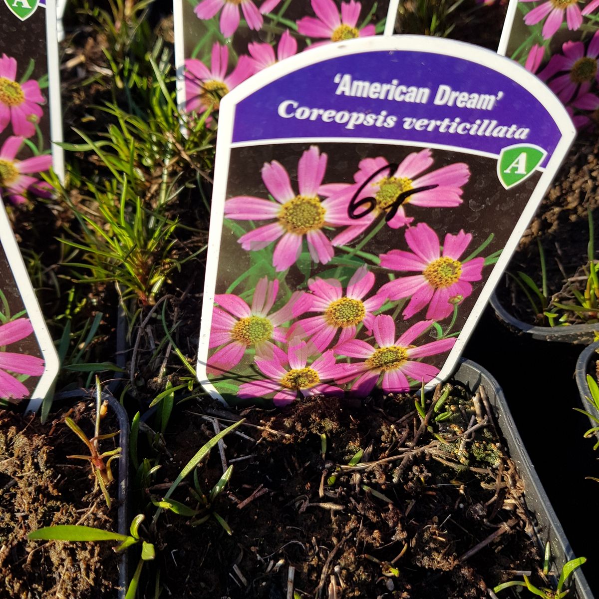 Zdjęcia przedstawiają egzemplarze Coreopsis rosea `American Dream` w wybranych rozmiarach.