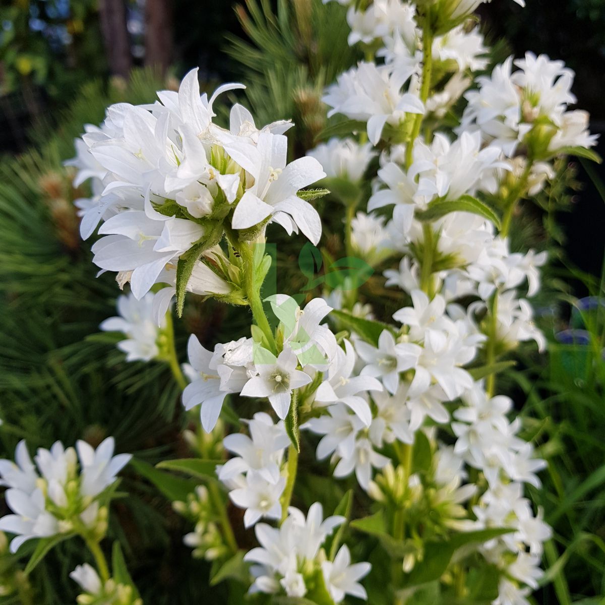 Zdjęcia przedstawiają egzemplarze Campanula glomerata `Alba` w wybranych rozmiarach.